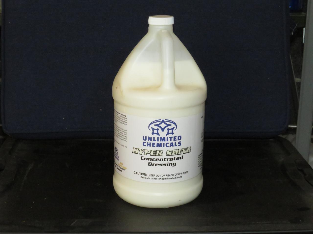 Dilute 3:1 with water to make a multi-purpose dressing. Use it as is on tires for a gloss that rivals solvent-based dressings. Provides a long-lasting shine on interiors. Great for engine compartments. Non-toxic and