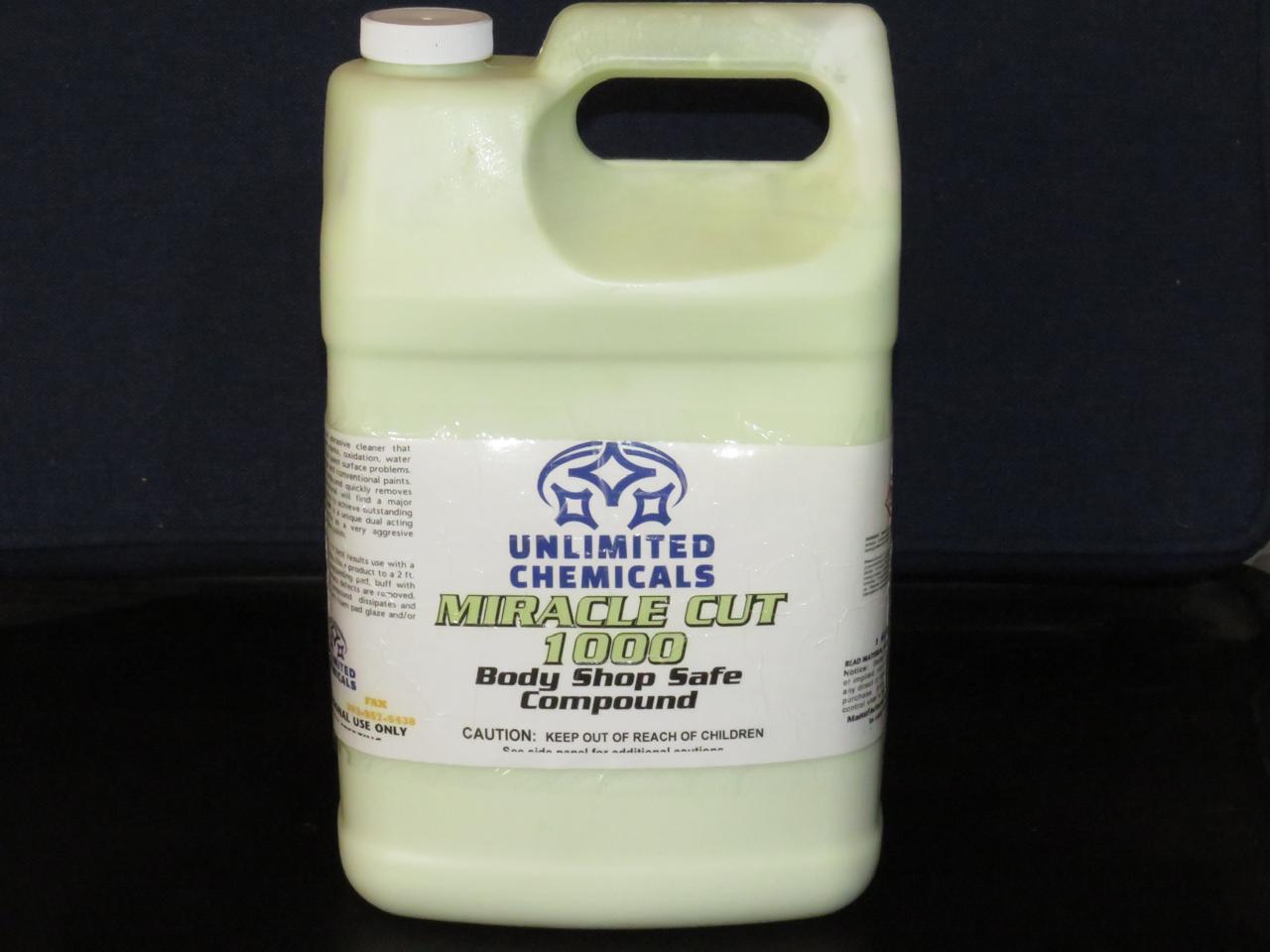 MIRACLE CUT 1000 is a powerful abrasive cleaner and fast-acting compound designed to eliminate 1000 to 1200 grit sand scratches, oxidation, water spots, and other surface imperfections. It delivers a high-gloss finish with minimal surface swirling, making it a favorite among professional detailers and auto body shops.